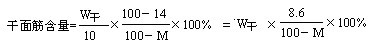 3、幹麵筋含量是以每百克含水量為14%的小麥粉含有幹麵筋的克數來表示的,如試樣質量為10g而幹麵筋稱得質量為W幹(g),則幹麵筋含量可按下列公式計算: