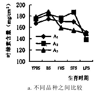 研究結果表明,配置方式及插秧量對葉綠素含量的影響主要在生育前期,表現為幼穗分化期插單苗的葉綠素含量極顯著高於插三苗的;而後期由品種特性決定,並且由於雜交稻遼優3225和屜優418葉綠素含量水平較低而最終影響幹物質積累。由於不同群體葉綠素含量水平不同,而葉綠素含量水平又是反映群體質量的一個重要指標,且易受肥水條件的影響而改變。
