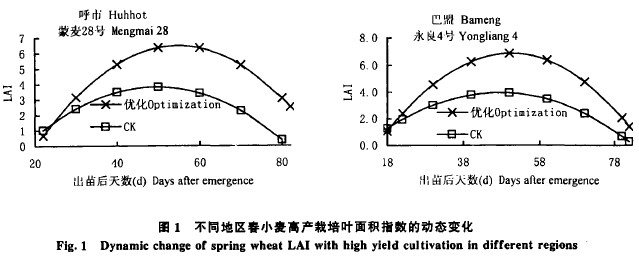 2.1春小麥商產群體適宜葉麵積指數及其發展變化