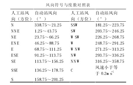 自zi動dong站zhan與yu人ren工gong站zhan存cun在zai的de偏pian差cha,原yuan因yin除chu儀yi器qi的de係xi統tong偏pian差cha外wai,由you於yu儀yi器qi的de工gong作zuo原yuan理li不bu同tong,采cai樣yang方fang式shi和he算suan法fa不bu同tong,造zao成cheng了le自zi動dong站zhan與yu人ren工gong站zhan觀guan測ce數shu據ju之zhi間jian的de差cha異yi。人ren工gong站zhan觀guan測ce的de風feng向xiang是shi16個方位,風速2~40m・s-1,起動風速:1.5m・s-1。並通過EN型測風風數據處理儀,每個正點打印輸出2min、10min平均風向風速,每天20時打印輸出日極大風速、最大風速及相應的風向、出現時間,日合計、日平均,並可隨時顯示各種瞬時值和平均值,存儲24h風向風速記錄。每天抄錄到月報表的有:2min、10min平均風向風速和最多風向、最大風速、極大風速。自動站觀測的風向是36個方位,以度(°)為單位,其啟動風速僅為0.3m・s-1。風向、風速采用滑動平均方法風速以1s為步長,求3s的滑動平均值;以1s為步長,求1min和2min滑動平均風速;以1min為步長,求10min滑動平均風速。