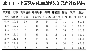 1、不同麩皮添加量的饅頭的感官評價