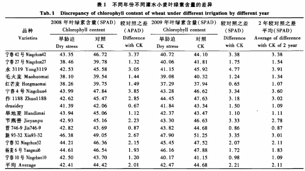 一、幹旱脅迫對小麥品種葉綠素含量的影響