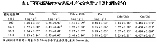 研究光照強度對金果欖葉片光合色素含量有何影響