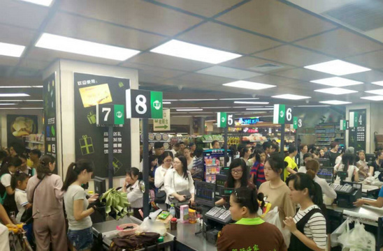 10月17日晚,海口市民因為即將登陸的台風“莎莉嘉”大肆囤貨,海口一超市內眾多市民排隊結賬。海口市民供圖