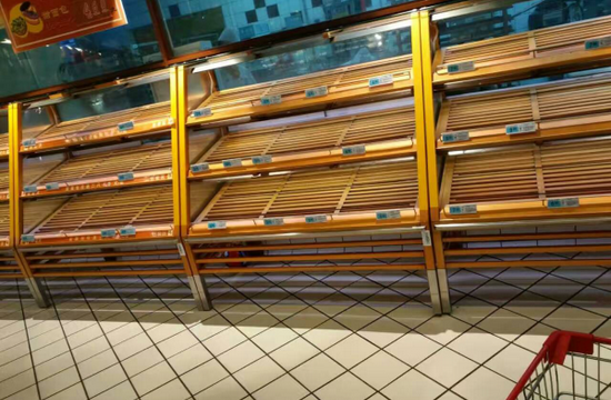 台風登陸海南:市民瘋狂囤糧 超市貨架被搶空
