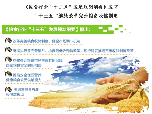 糧(liang)食(shi)收(shou)儲(chu)製(zhi)度(du)改(gai)革(ge)是(shi)規(gui)劃(hua)中(zhong)的(de)一(yi)大(da)突(tu)出(chu)亮(liang)點(dian)。規(gui)劃(hua)提(ti)出(chu),要(yao)堅(jian)持(chi)市(shi)場(chang)化(hua)改(gai)革(ge)取(qu)向(xiang)與(yu)保(bao)護(hu)農(nong)民(min)利(li)益(yi)並(bing)重(zhong),改(gai)革(ge)完(wan)善(shan)糧(liang)食(shi)收(shou)儲(chu)製(zhi)度(du),健(jian)全(quan)市(shi)場(chang)調(tiao)節(jie)機(ji)製(zhi),提(ti)升(sheng)應(ying)急(ji)保(bao)障(zhang)能(neng)力(li),促(cu)進(jin)糧(liang)食(shi)生(sheng)產(chan)穩(wen)定(ding)發(fa)展(zhan),確(que)保(bao)糧(liang)食(shi)市(shi)場(chang)供(gong)應(ying)和(he)價(jia)格(ge)基(ji)本(ben)穩(wen)定(ding)。