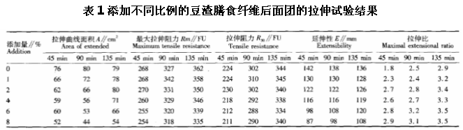 研究豆渣膳食纖維對麵團拉伸特性的影響
