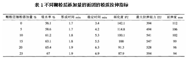 一、糊粉層細粉對麵團粉質拉伸特性的影響