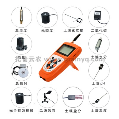 溫度、濕度、光照強度、光合有效輻射、風向風速、雨量、CO₂濃度、土壤溫度、土壤水分、土壤pH、土壤鹽分、土壤緊實度、總輻射、土壤氧氣
