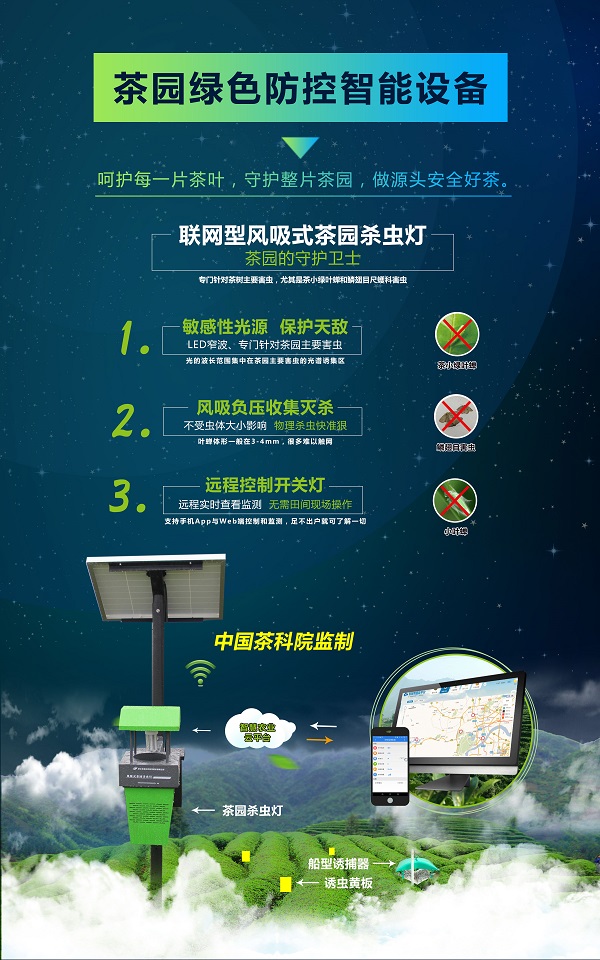 茶園綠色防控智能設備:嗬護每一片茶葉,守護整片茶園,做源頭安全好茶。