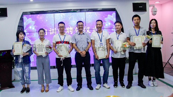 隨後,陳渝陽總經理向40位內訓師表示祝賀,為他們頒發聘書並合影。內訓師代表朱娜、龍捷頻、李璐茜紛紛表示,內訓師是企業文化的宣講者、踐行者、打(da)造(zao)者(zhe)和(he)傳(chuan)播(bo)者(zhe),任(ren)重(zhong)而(er)道(dao)遠(yuan)。今(jin)後(hou)當(dang)忠(zhong)誠(cheng)於(yu)企(qi)業(ye),精(jing)耕(geng)於(yu)專(zhuan)業(ye),廣(guang)聞(wen)於(yu)天(tian)下(xia),嫻(xian)熟(shu)於(yu)課(ke)堂(tang),統(tong)一(yi)思(si)想(xiang)認(ren)識(shi),樹(shu)立(li)企(qi)業(ye)責(ze)任(ren)感(gan),率(lv)先(xian)垂(chui)範(fan),開(kai)拓(tuo)創(chuang)新(xin),持(chi)續(xu)精(jing)進(jin),成(cheng)為(wei)優(you)秀(xiu)內(nei)訓(xun)師(shi),為(wei)托(tuo)普(pu)戰(zhan)略(lve)達(da)成(cheng)貢(gong)獻(xian)自(zi)己(ji)的(de)力(li)量(liang)。