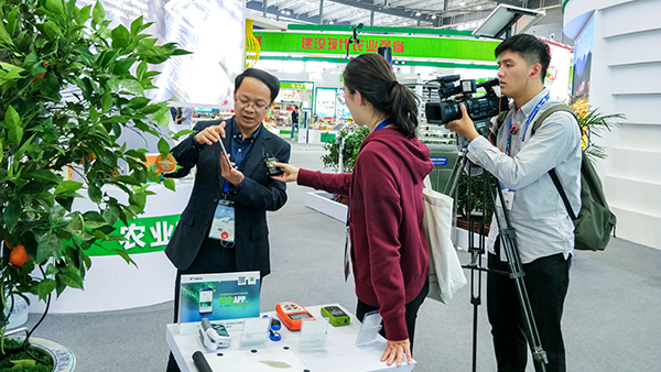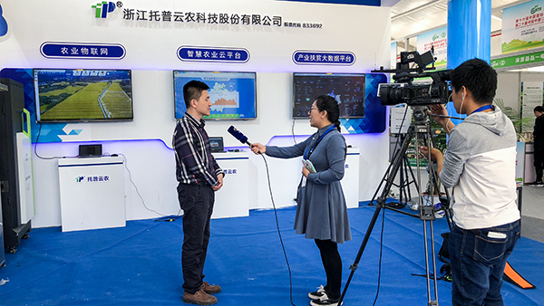 現場的電視台記者還對托普雲農展區的數字科技十分感興趣,對兩位負責人進行了采訪。