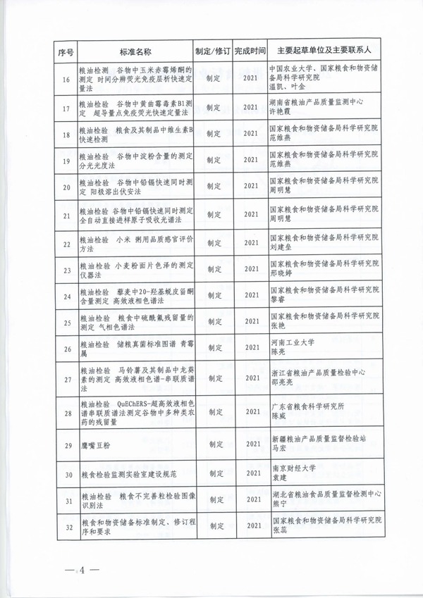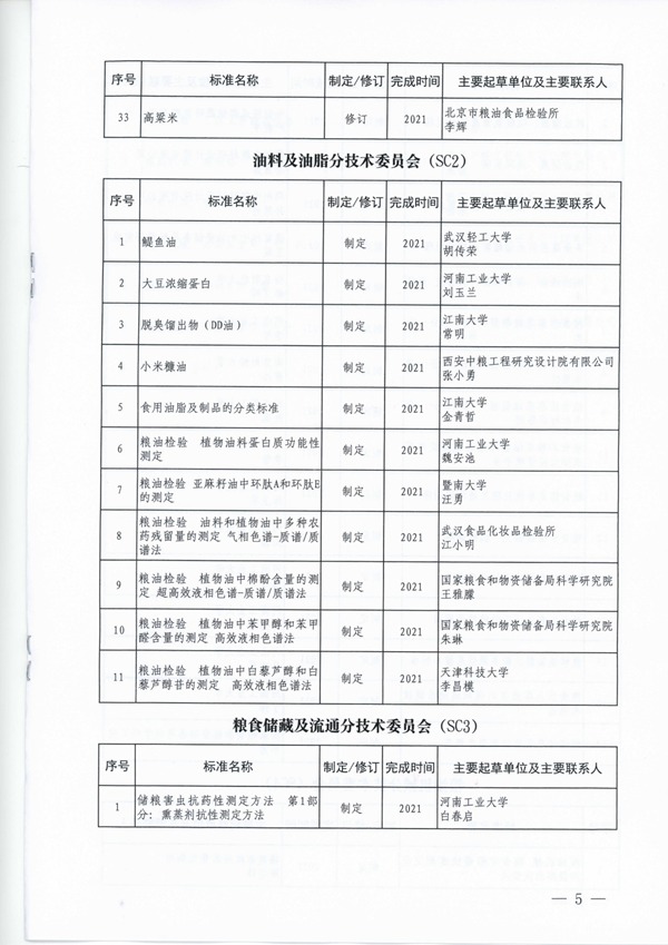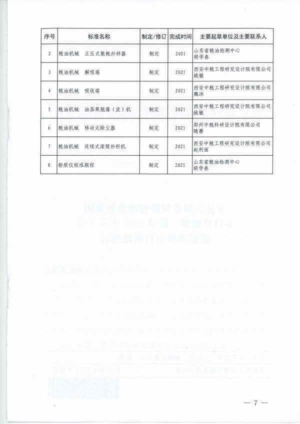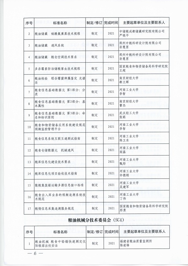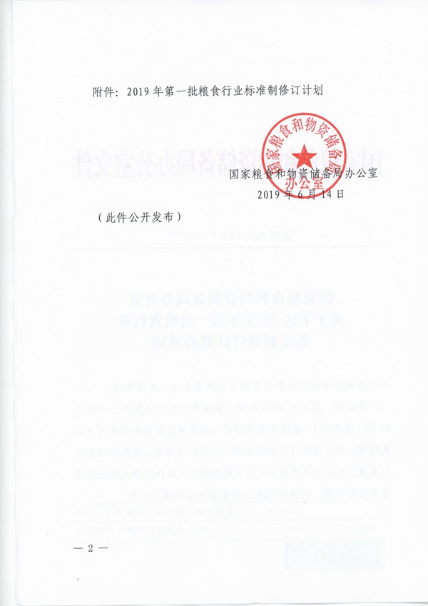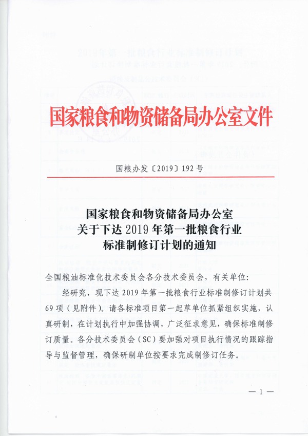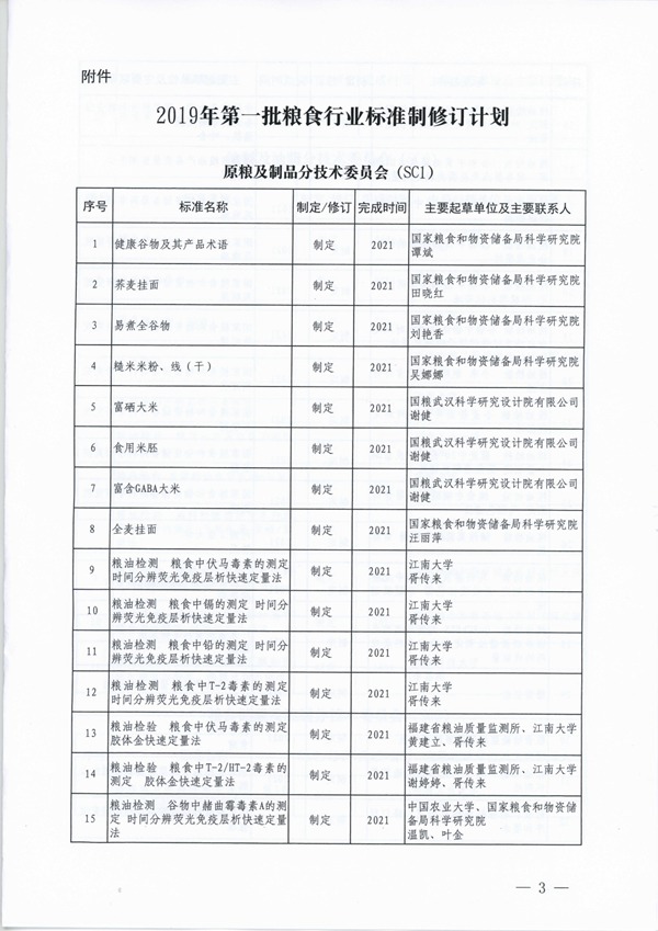 2019年第一批糧食行業標準製修訂計劃