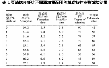 一、豆渣膳食纖維對麵團粉質特性的影響