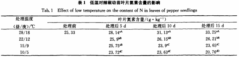 一、低溫對辣椒幼苗葉片氮含量的影響
