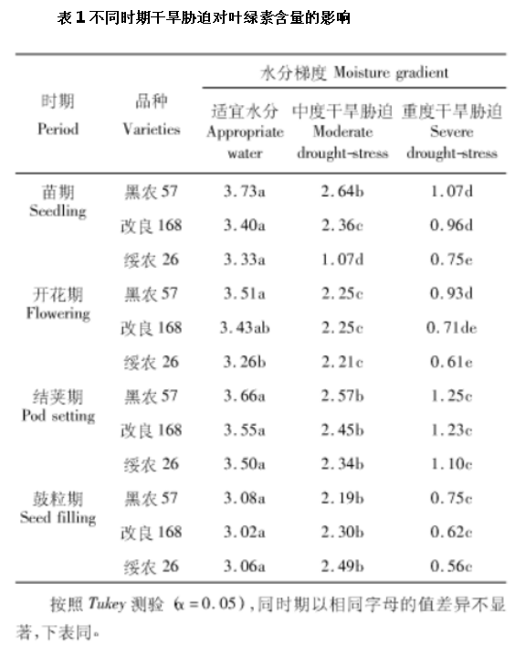 一、幹旱脅迫對大豆葉片葉綠素含量的影響
