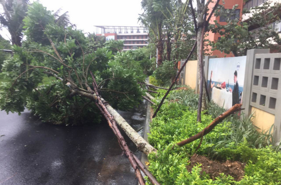 10月18日上午,海南陵水街頭的樹木被狂風拔起。海口市民供圖