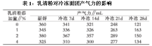 一、乳清粉對麵團冷凍期間發酵活力的影響