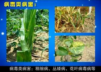 病毒類病害:粗短病、叢矮病、花葉病毒病。