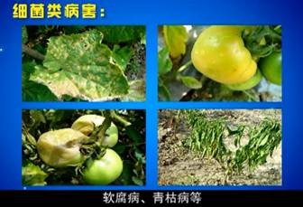 細菌類病害:潰腸病、細菌性角斑病、軟腐病、青枯病;